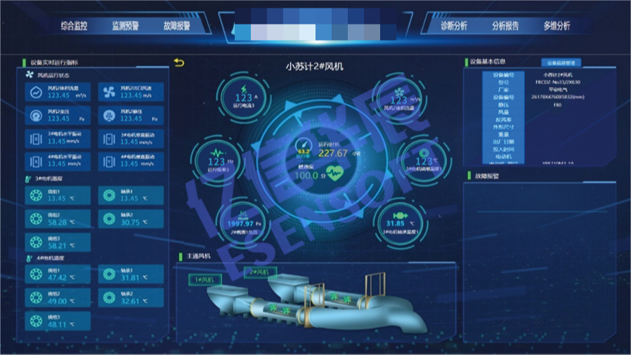 以大数据分析平台的数据汇聚和分析模型为基础,机电设备故障诊断及预警云平台。顺利获得对关键机电设备易损部件的振动、温度信号进行在线监测。同时顺利获得采集机电设备的电压、电流等运行状态信号,运用故障诊断及预警云分析模型,实时智能诊断设备故障原因、故障类型、故障严重程度。利用能源物联网数据,感知井下机电设备的运行工况,对机电设备的能耗数据进行智能分析、判断,预测设备故障、优化运行环境、优化设备配置,达到节能降耗、井下机电设备安全、高效、经济运行的目的。