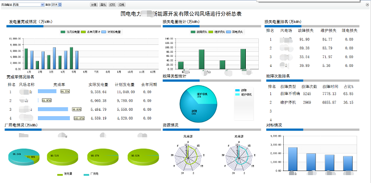 根据新能源风电场单机管理系统的建设范围与内容以及同业对标指标体系,新能源公司协调各业务部门,梳理风机对应的性能、经济等业务指标,实现风电场指标数据大而全的大包围形式。