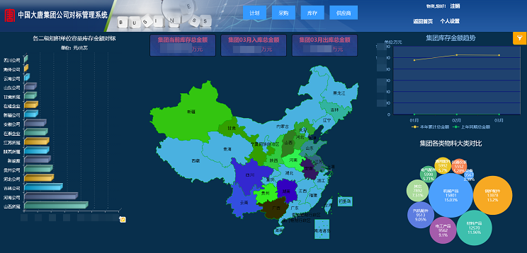 对标管理系统财务部分主要进行数据分析,为中国大唐集团公司以及板块企业进行多维度分析决策和运营决策给予及时有效的信息。对标管理系统物资部分主要实现电子仓库,实现物料全集团共享查询、支持备品备件协作网管理、联储代储管理;整合各基层企业采购数据并且集成大唐电子商城平台相关采购数据,进行数据分析为采购决策给予支持。