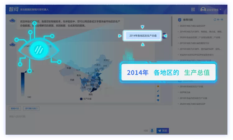 智问3.0依托自然语言处理、机器学习、人工智能等AI技术,使其拥有了一双“明亮且毒辣”眼眸,可快准狠地搞清用户提问意图,从中提取出关键指标和维度;另外,它还可根据用户所问进行关键词推荐、热门问题推荐、个性化推荐、相关问题推荐等,全方位覆盖用户的搜索意图。