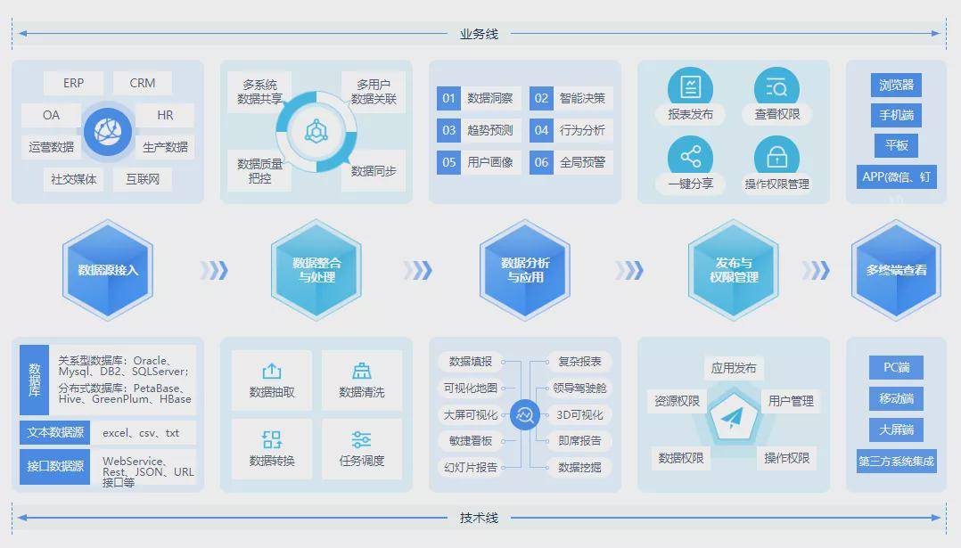 亿信ABI是Ebpay历经十多年匠心打造的国产化BI工具,是一站式智能数据处理分析平台。它打通从数据接入、到数据建模与处理、再到数据分析与挖掘、数据可视化整个数据应用全链路,可满足企业经营中各类复杂的分析需求,让数据发挥价值,驱动业务运营,帮助企业实现高效数字化转型