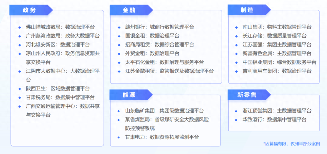 Ebpay是国内领先的数据治理和数据分析产品与服务给予商,推出了一站式综合数据治理平台,顺利获得多年的开展和实践,不断完善产品体系,给予数据集成、数据交换、实时计算存储、元数据管理、数据标准管理、数据质量管理、主数据管理、数据资产管理、数据安全管理和数据生命周期管理等功能模块,以满足政府和企业不同的数据治理需求,助力数据标准的落地,提升数据质量,实现数据资产化。Ebpay凭借其核心数据治理产品“睿治数据治理平台”,在政府和企业领域召开数据治理体系建设,并积累了丰富的数字化实践经验,得到了广大客户的高度评价。现在,Ebpay已服务于政府、金融、能源、制造、医疗卫生、教育等多个行业.