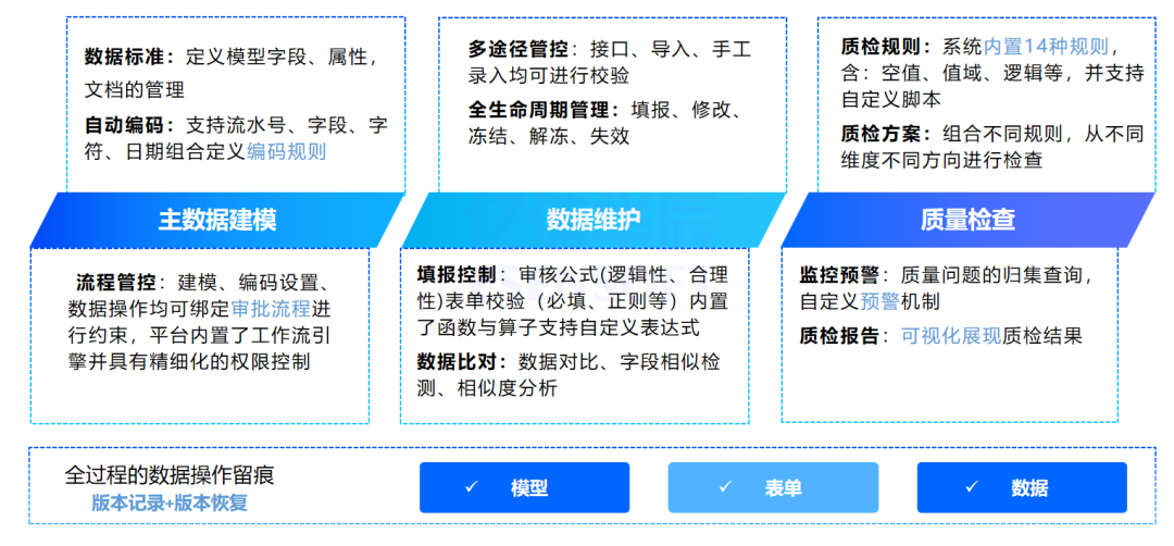 数据标准、资产目录和数据服务等核心组件的数据资产管理平台,实现元数据的采集和追踪、数据模型的管理和检查、数据标准的制定和映射、数据质量的检核和整改、数据服务的开发和监控、以及资产目录的编制和共享等关键数据资产管理活动的工具化和持续化。