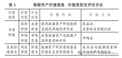 第一时间,既要评估数据资产的当前价值,也要评估其未来价值潜力。数据资产的当前价值主要表现为经济价值和市场价值,经济价值主要评估当前利用数据资产所能创造的经济利益,市场价值以交易为基础,评估数据资产在市场出售所能获取的对价。数据资产的未来价值潜力表现为内在价值,内在价值评估主要是综合考虑数据量、数据质量、市场开展潜力、应用场景等因素,对数据资产的潜在价值做出评估。