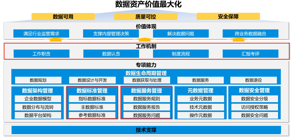 数据资产运营的主要目标是实现数据资产价值的社会化,需规划并不断迭代数据安全管理及合规性、数据资产成本及价值创造、组织结构优化、数据质量提升等方面,以持续优化数据资产管理能力。