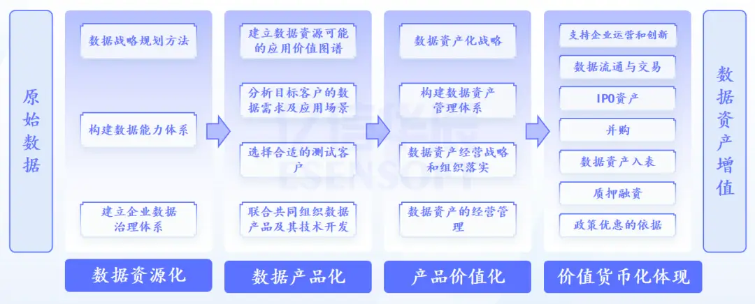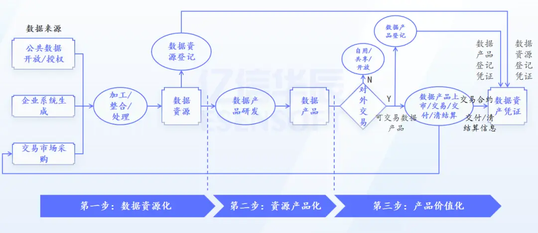 企业数据资产化的实施路径可以分解为三个关键阶段:数据资源化、资源产品化和产品价值化。