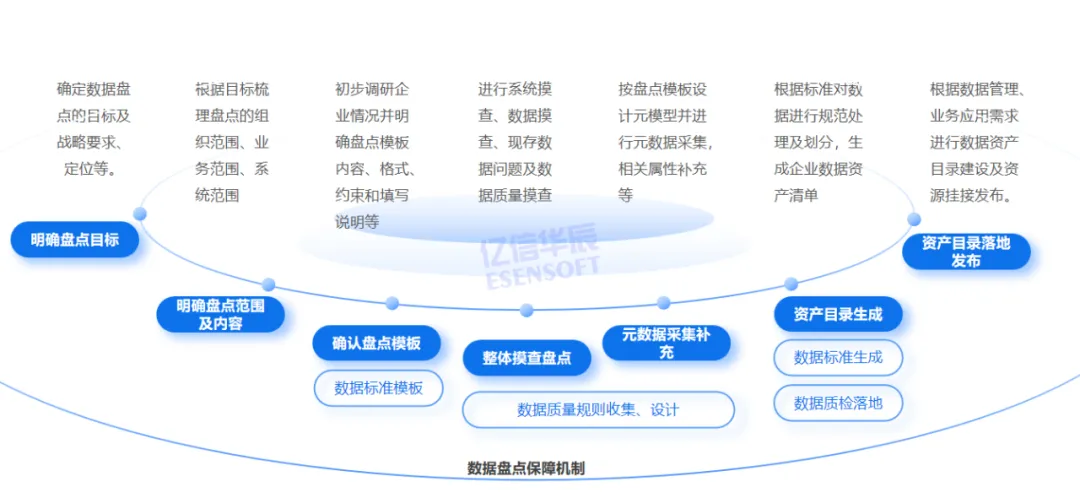 对于企业来说,通常需要经历以下七个步骤来完成数据资产的盘点,如下所示: