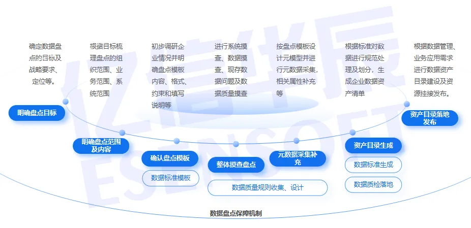 具体来看,我们将设定明确的盘点目标,考虑到数据资产的当前状态和管理需求,明确盘点的目标、范围、内容,规划所需资源等。明确盘点范围及内容,梳理出具体的组织范围、业务范围及系统范围。制定盘点模板,顺利获得调研企业情况并规划出模板的内容、格式、约束和填写说明。进行初步盘点,采集数据、补充相关属性,并使用元数据管理工具进行系统性的摸查。补充元数据采集,快速识别和梳理各类数据,剔除相关数据,为后续实现资产分类给予基础资源。在生成资产目录这一步,对数据进行规范处理并分类,生成企业数据资产清单。在发布资产目录,我们将依据数据管理和业务应用需求进行数据资产目录的建设并发布。