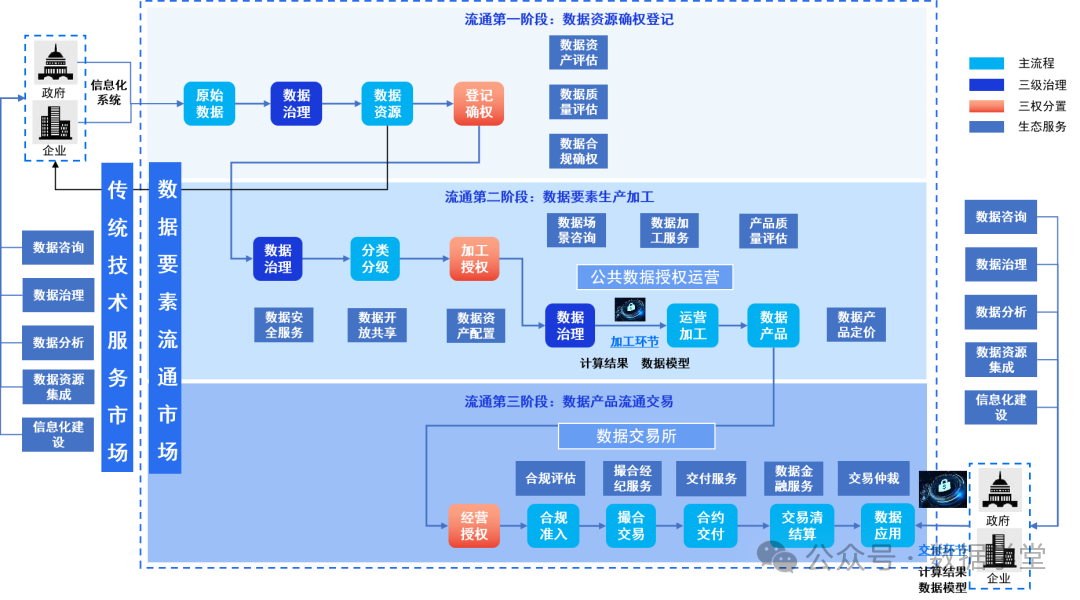 3、参与主体 企业内部部门:决策组织、数据部门、财务部门、IT 部门、业务部门。外部组织:数据交易组织、数据治理组织(数据商)、律师事务所、会记师事务所、数据资产评估组织、银行金融组织等。