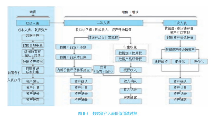 A: 如图 B-3 所示,在实践中,数据资源入表过程是一个分阶段的价值创 造过程。