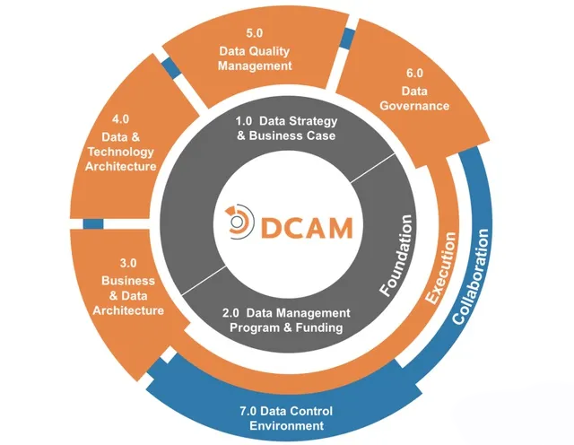 EDM-DCAM 数据管理能力成熟度模型。DCAM模型由企业数据管理协会(EDM Council--北美的一家研究金融行业数据管理的公益性组织)开发,现在已经发布了两个版本(这两个版本的模型在本公众号之前的文章中都有分享)。DCAM2.0模型包含了7大组件,分别是数据管理战略与业务案例,数据管理流程与资金,数据架构,技术架构,数据质量管理,数据治理,数据操作。