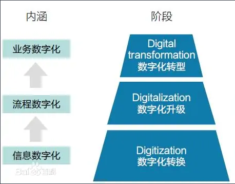 谈到数字化就不得不说的是企业的数字化转型。什么企业的数字化转型?数字化转型(Digital transformation)是建立在数字化转换(Digitization)、数字化升级(Digitalization)基础上, 进一步触及公司核心业务,以新建一种商业模式为目标的高层次转型。
