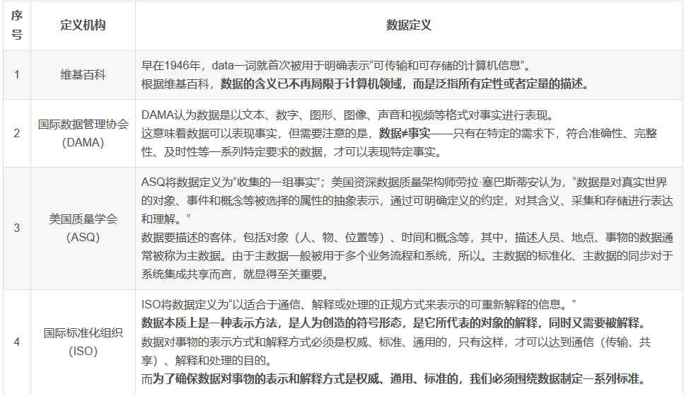 谈到什么是数据化,我们先说说什么数据。不同的组织有不同的定义,让我们用一张图来说明。