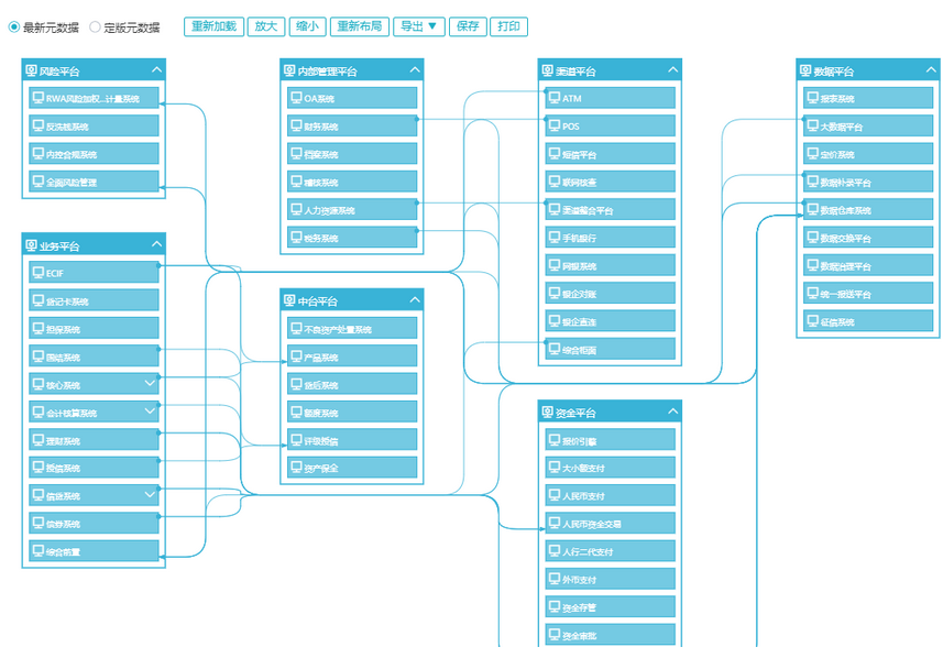 Ebpay元数据管理平台给予数据地图功能,全面梳理各业务系统的分布情况及关联关系,清晰的展示数据全貌,形成企业数据全景图。