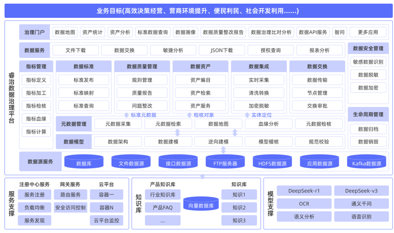 顺利获得搭建企业数据治理平台,集成企业系统元数据,形成企业数据地图,结合数据标准对企业数据进行规范性评估识别,与数据质量管理共同推进企业数据标准化整改,全面提升数据质量。并根据企业数据资产应用、数据安全管理、数据服务共享等需求,形成企业数据资产共享机制,实现高效分析决策,赋能业务创新,更好支持AI大模型统计分析。